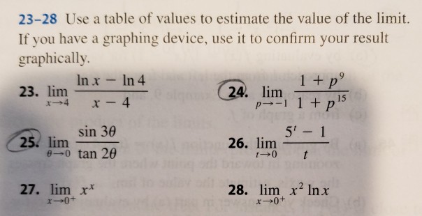 Solved 23 28 Use A Table Of Values To Estimate The Value Of Chegg Com